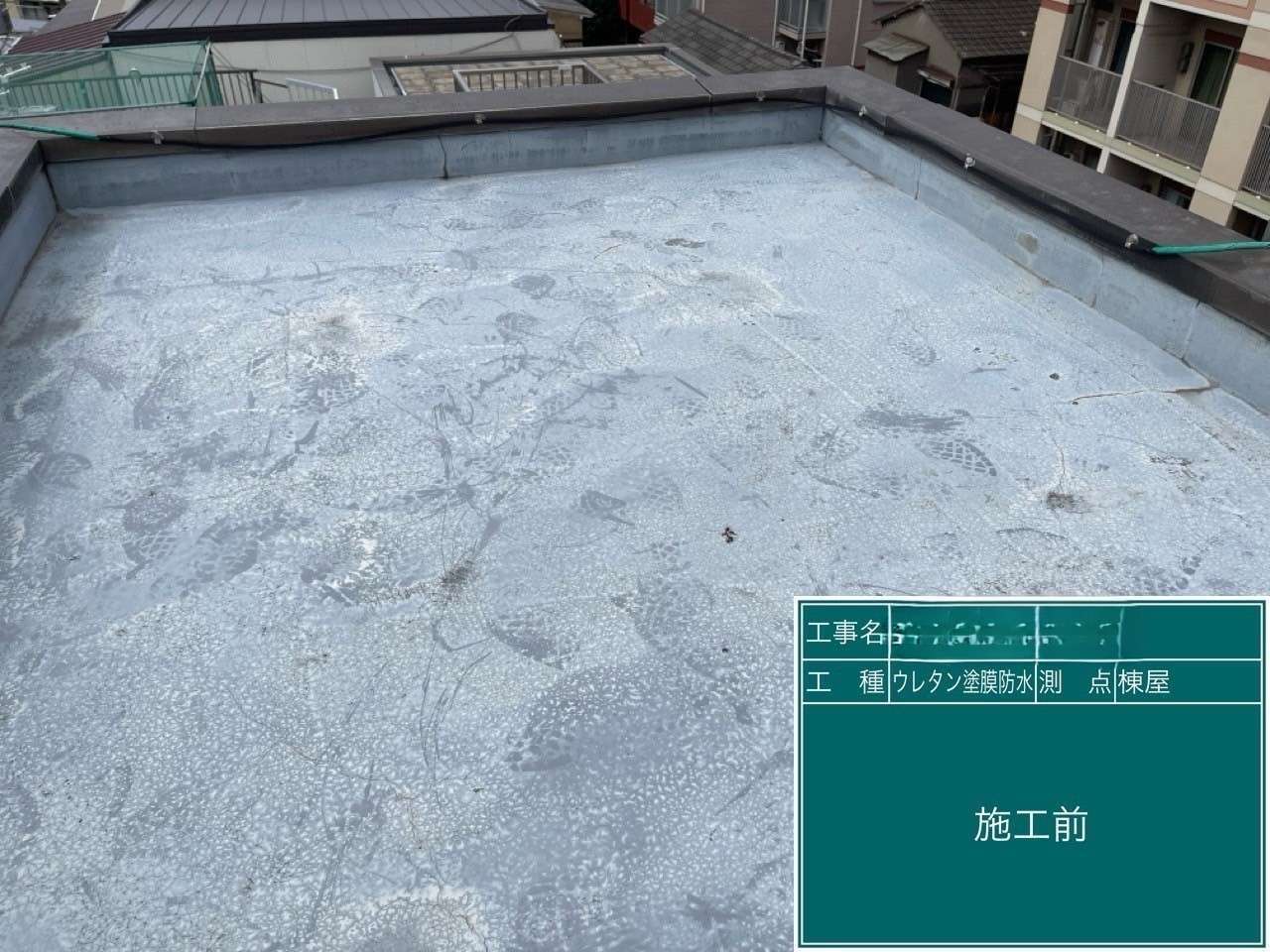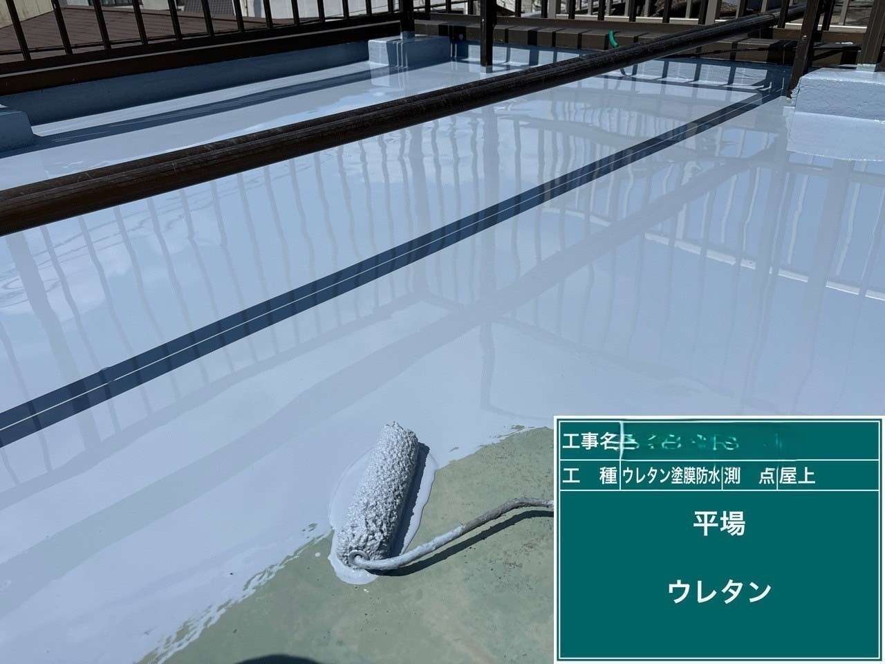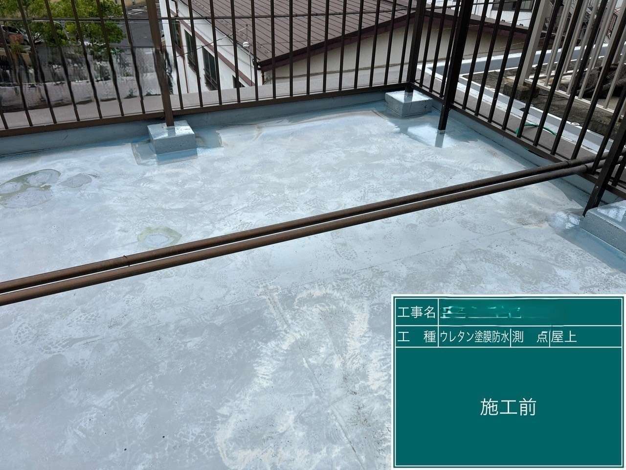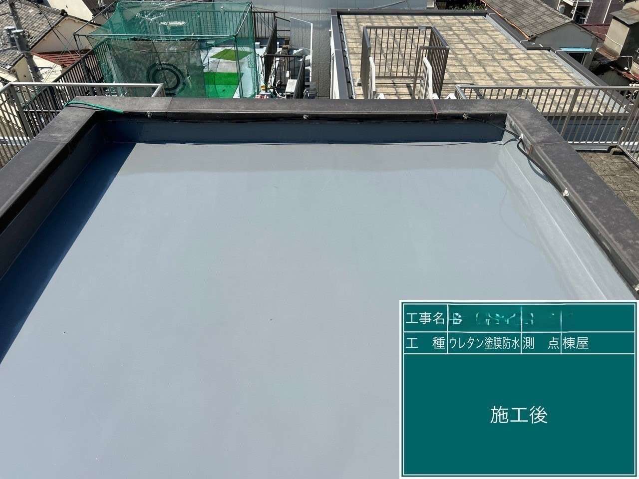 今回マンションの塔屋の外壁塗装・ベランダと屋上の防水工事をさせていただきました。